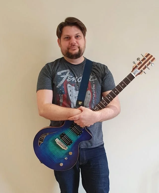 In 2019, he got his first Maybury Guitar, Floorboard an upscaler T-Type Prototype that has been one of his main guitars ever since, used regularly on his YouTube channel and at gigs. Within a year he had speced out and ordered a full custom build, Carrie, an off the shoulder, single cut semi-hollow dual humbucker guitar. This has also been featured many times on his channel and is his go to for recording.