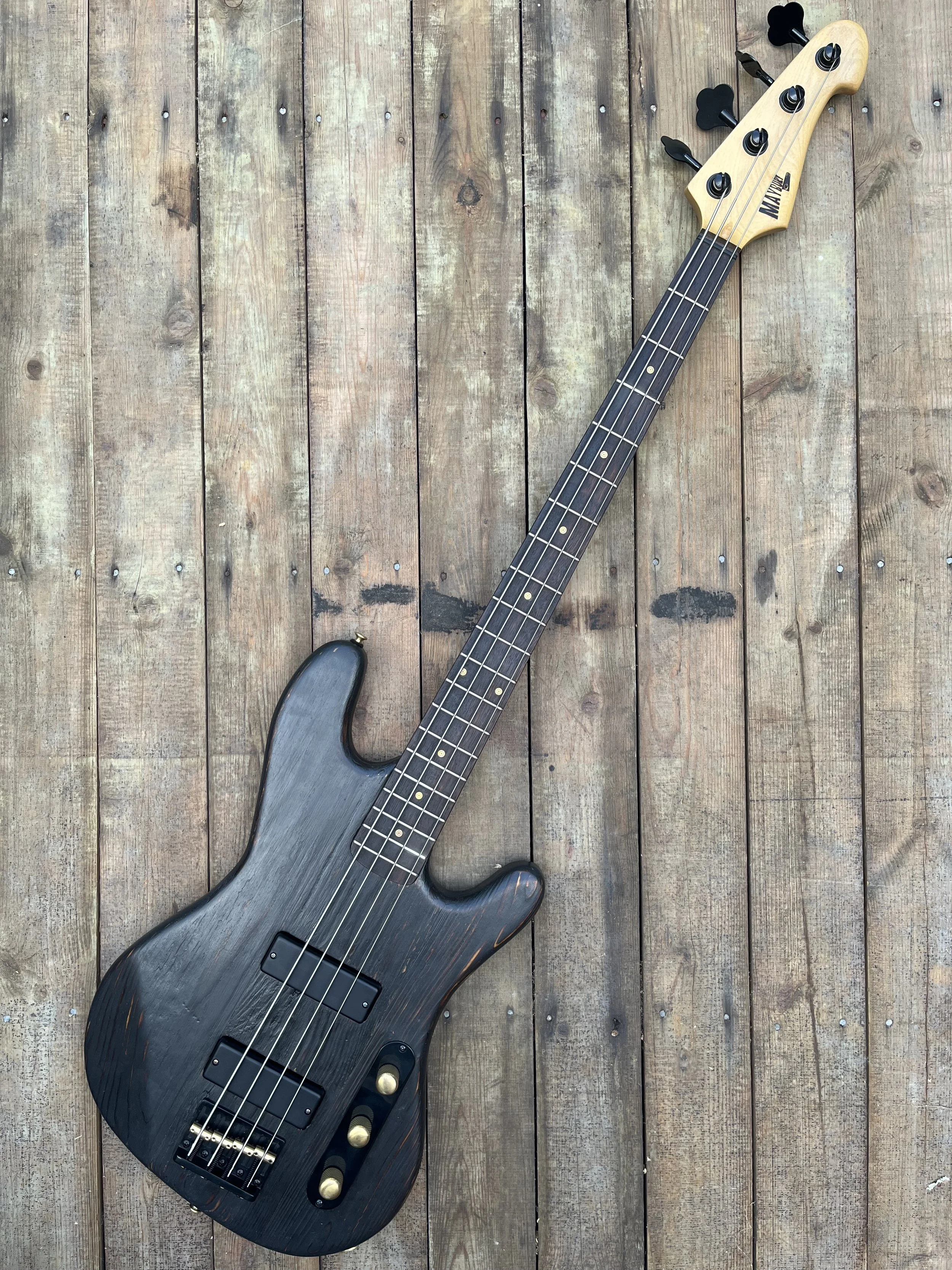 Hardware is all-black and all-business, from the Kluson elephant ear tuners to the Gotoh bridge with brass saddles. At its core are Kent Armstrong Claymore Soapbars, delivering a voice that’s deep, articulate, and unmistakably bold.