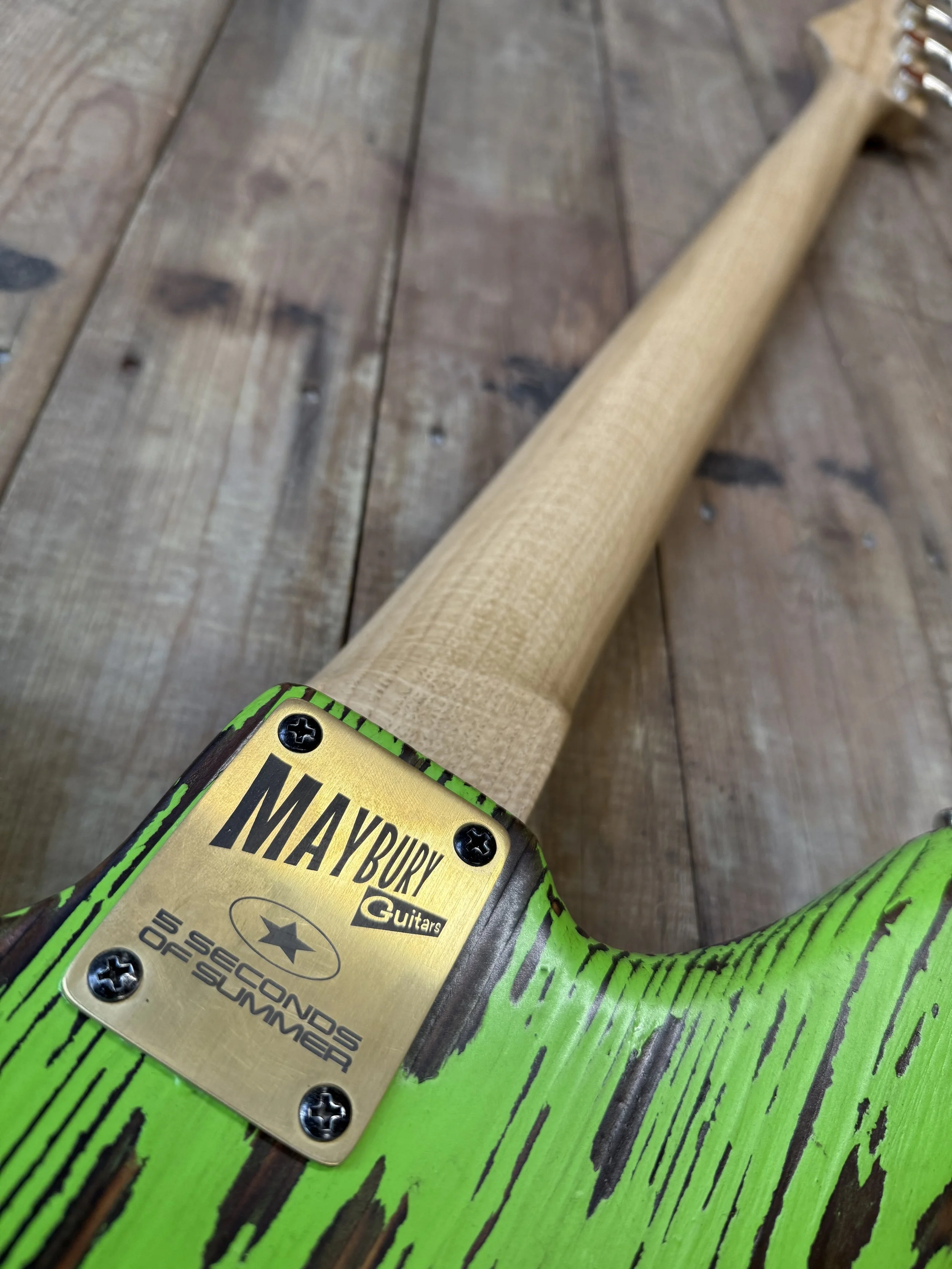 Adding a personal touch, the fretboard includes a custom 5SOS star emblem across the 7th and 8th frets, while the neck plate proudly displays the 5 Seconds of Summer logo.