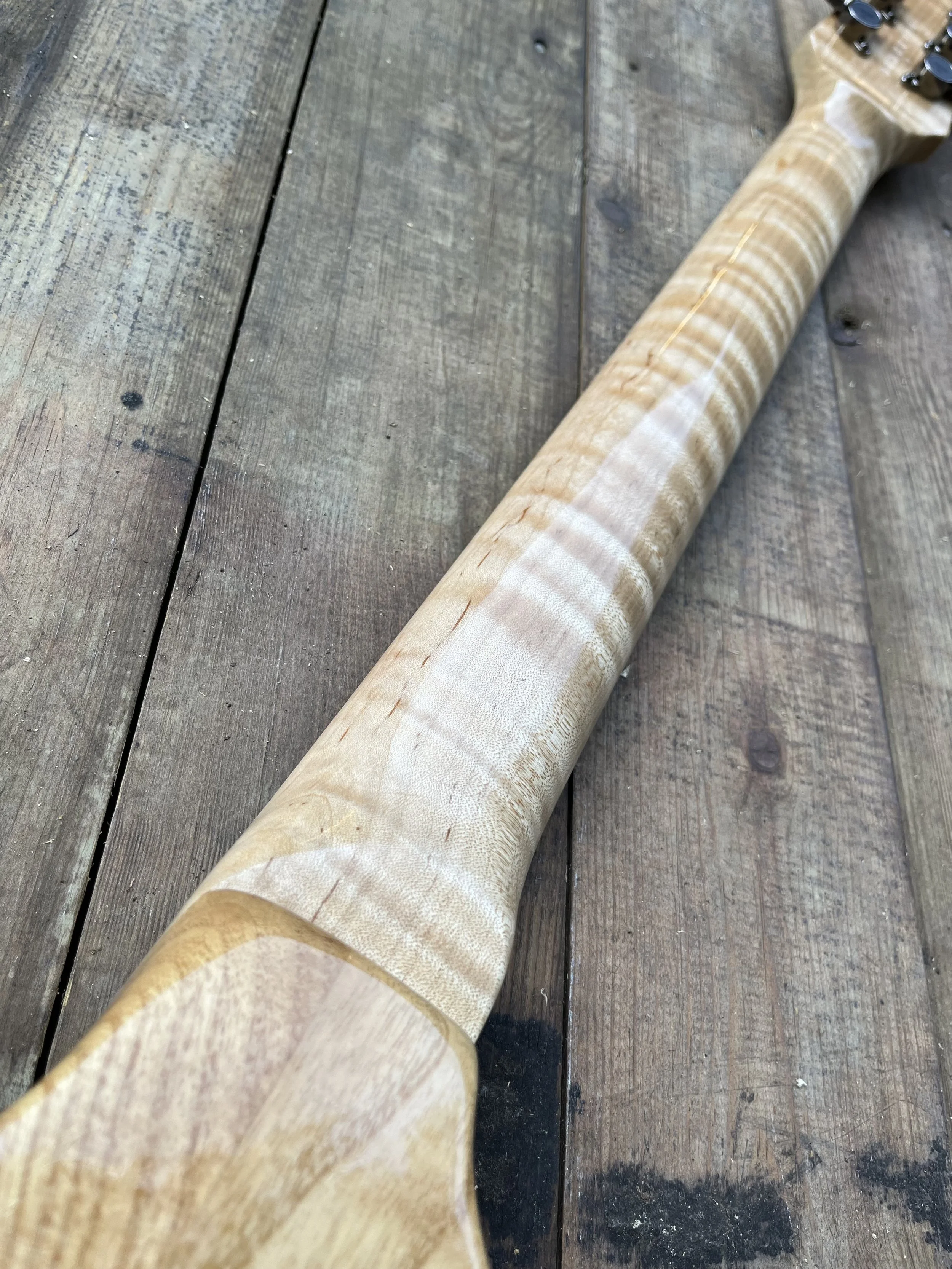 In the end, this instrument is exactly what it set out to be: a fully bespoke, meticulously crafted guitar, built to the customer’s exact specifications, with looks and tone that are nothing short of remarkable.