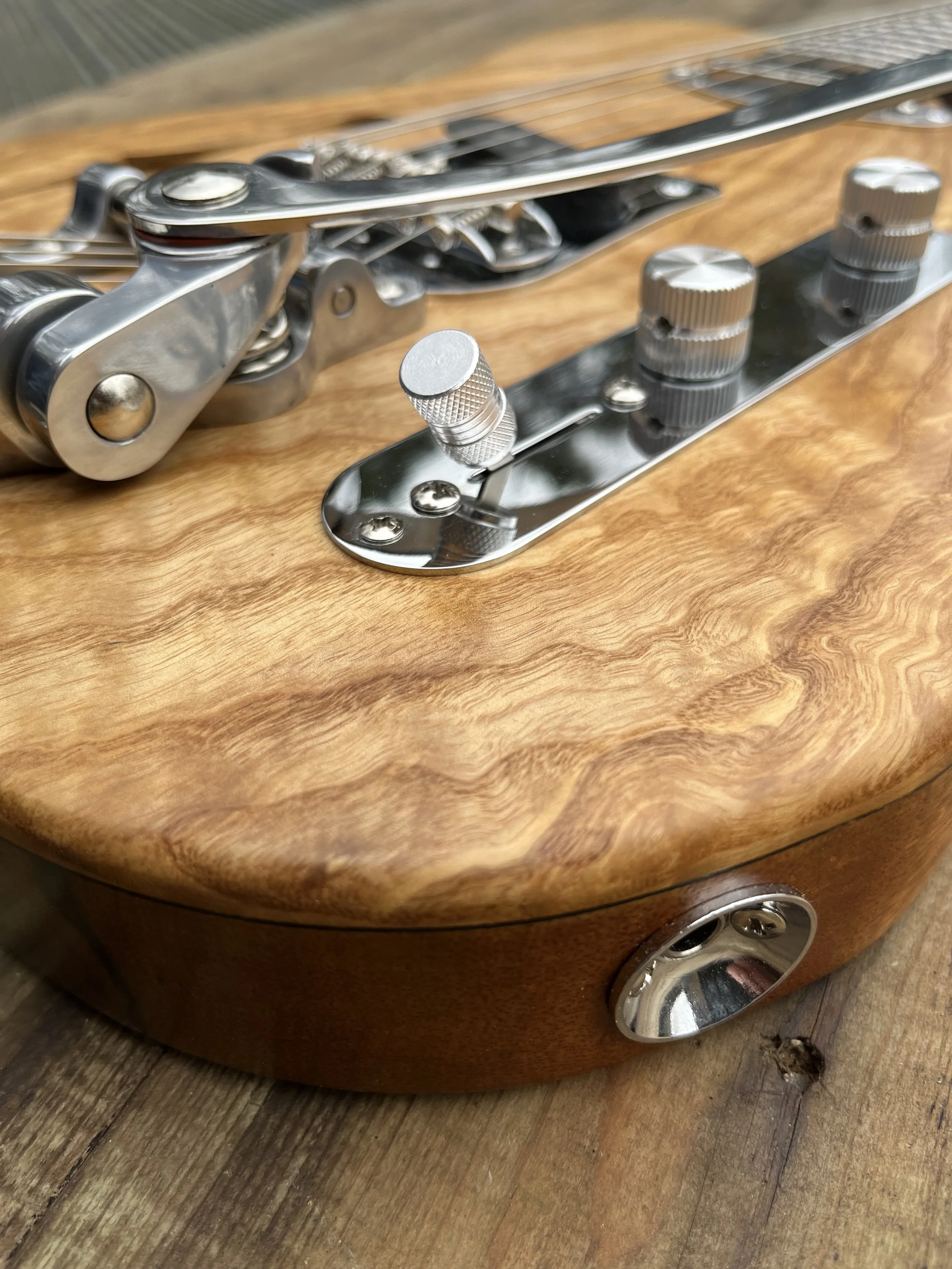 Every detail impresses: the neck combines contrasting dark wenge and light oak, complemented by a 25.5β scale Munn ebony fretboard adorned with jumbo stainless frets and 4mm aluminum and black resin markers.