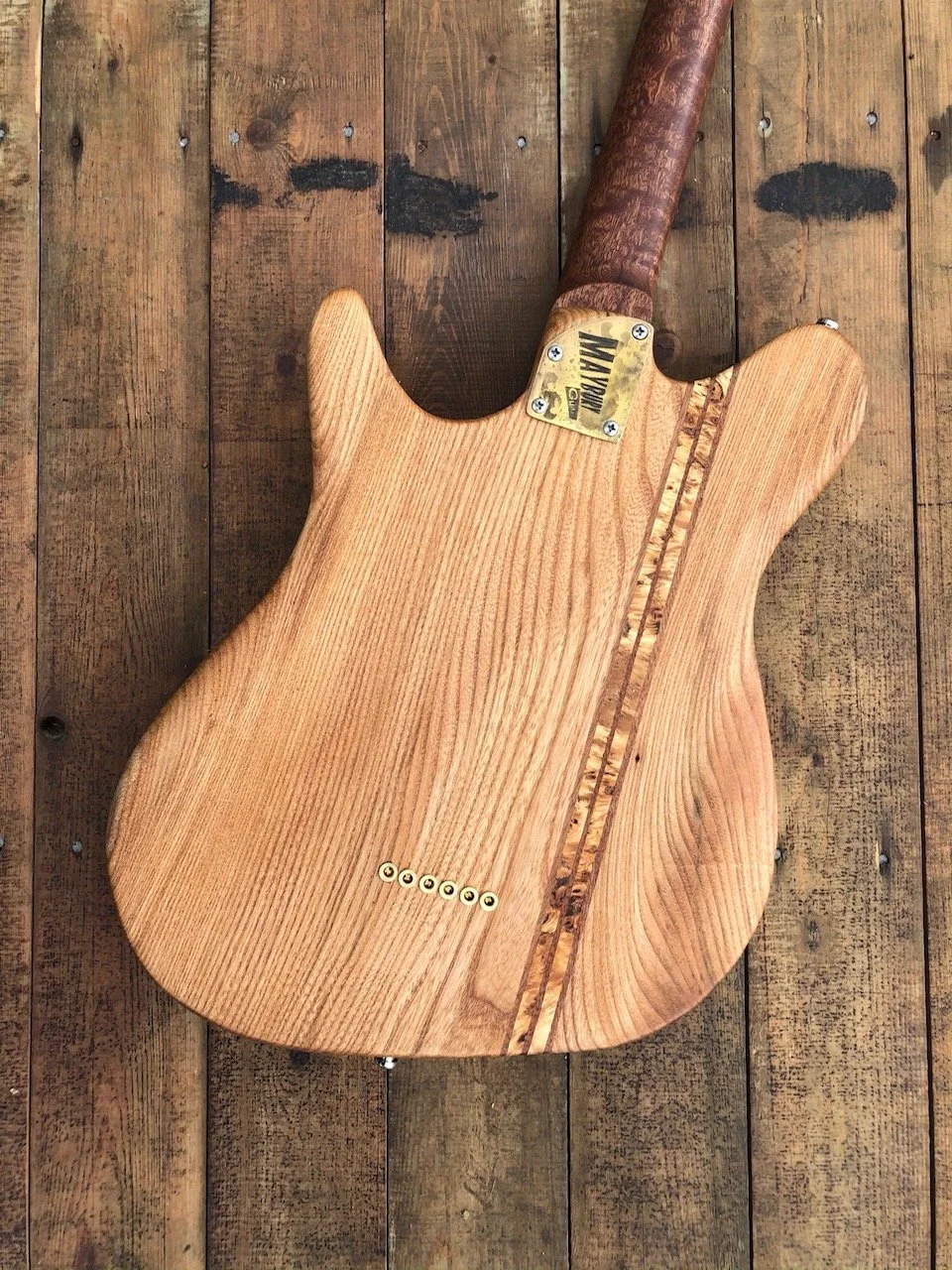 As always its finished off with custom made Maybury truss rod cover, neck plate and pickup rings.